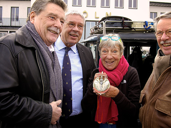 Über 84.000 Kilometer hat die Schnauferldame Heidi Hetzer bei Ihrer Weltumrundung zurückgelegt. Am 03. März 2017 ist Heidi auf ihrer Rückreis zu einem Zwischenstopp nach Köln gekommen und wurde natürlich von uns gebührend empfangen. Nach einem Treffen am Nicoluas-August-Otto-Park in der Motorworld Köln Rheinland ging es in die Stadt zu einem Empfang im historischen Rathaus. Kölns erster Bürgermeister Hans-Werner Bartsch hatte es sich nicht nehmen lassen, die Weltenbummlerin persönlich zu empfangen. Vom Rathaus ging es zum Excelsior Hotel Ernst, dem Quartier von Heidi Hetzer.
