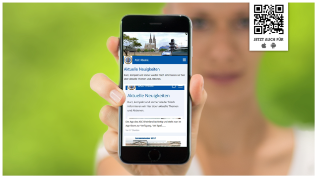 09.12.2016 - Die ASC Rheinland App steht im App-Store (iOS & Android) zur Verfügung. Mit der App stellen wir News, Beiträge und Termine immer frisch, aktuell und übersichtlich zur Verfügung. Einfach in den App-Store gehen und die App downloaden oder den Code oben rechts einscannen.... viel Spaß!