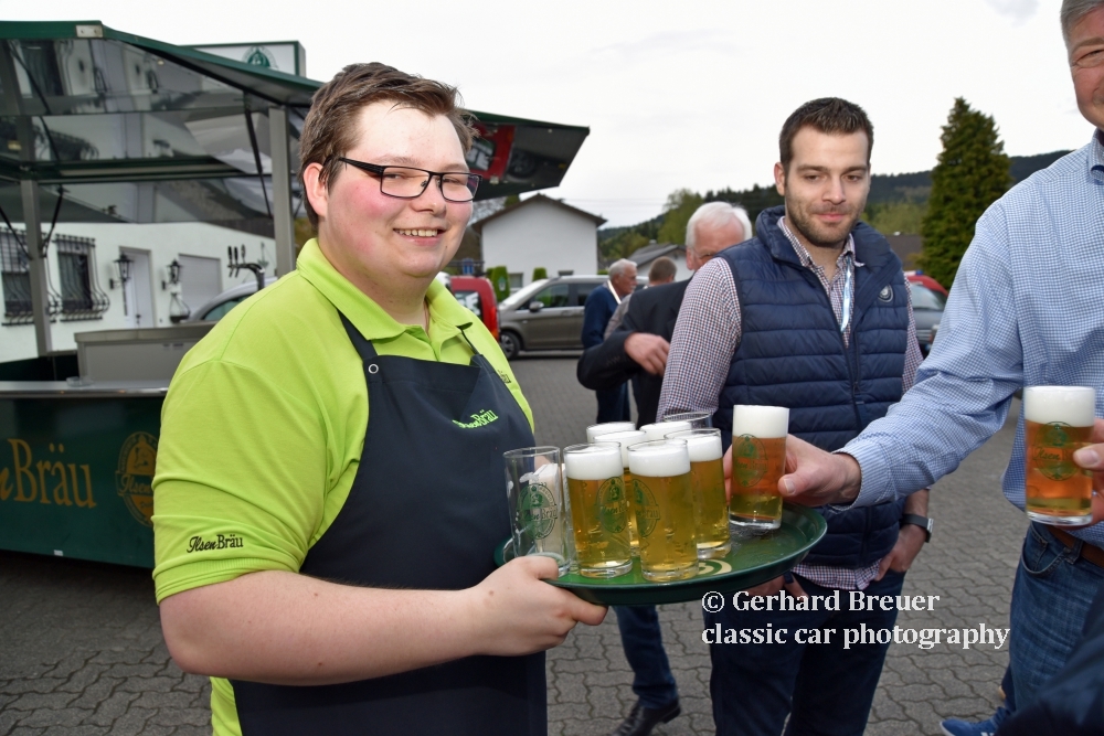 Treffpunkt bei der Ankunft am Freitag war das Siegener Mercedes-Haus „Bald“ und die Mannschaft des Autohauses hat sich selbst übertroffen: an dem gesamten Wochenende standen das Betriebsgelände, die Tiefgarage, die Werkstatt und die Geschäftsräume zur Verfügung. Nicht zu vergessen der aufmerksame und freundliche Service, der von einem Team der Auszubildenden geleistet wurde! Mit dem Autohaus Bald und der Sparkasse Siegen stehen der Landesgruppe zwei zuverlässige Groß-Sponsoren zur Seite. Nach einem Imbiss und nach der technischen Abnahme wurden die Gäste mit Shuttle-Service und Bussen zu einem rustikalen Abend mit „Schnauferl-Palaver“ in die Privatbrauerei „Ilsen“ in Kreuztal gebracht.