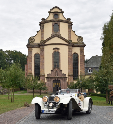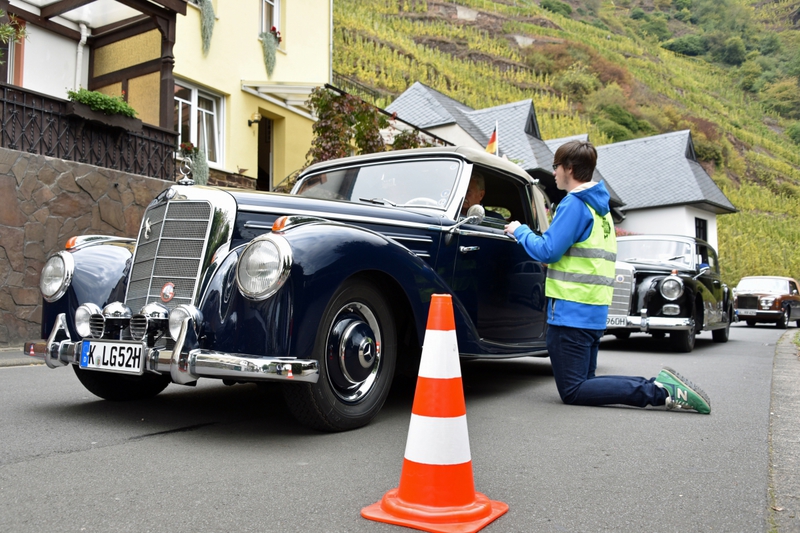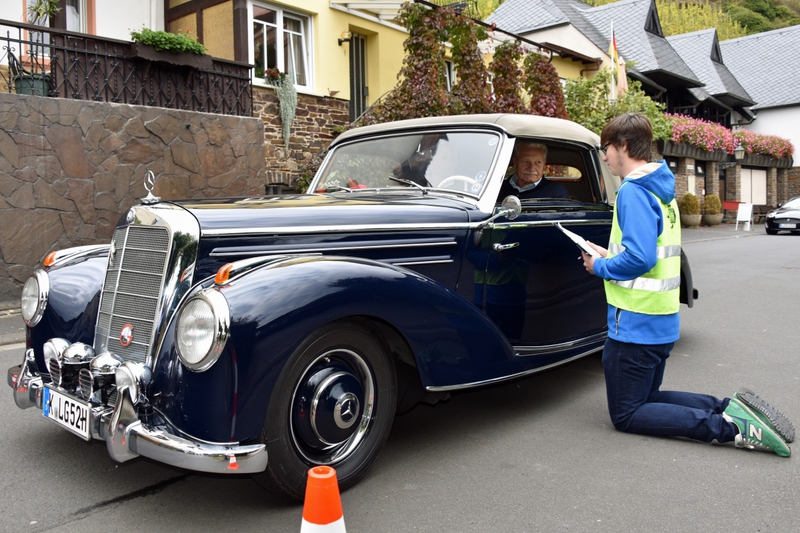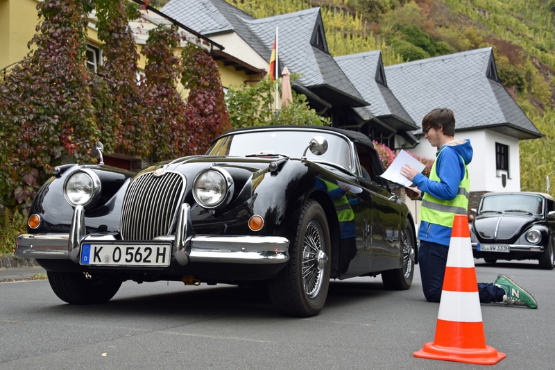 Langschläfer mussten sich am Freitagmorgen wohl oder übel mit einer frühen Rückmeldung ihres Weckers anfreunden; die Teilnehmer waren gebeten, bereits ab 08.00 Uhr am Start einzutreffen. Zur Versöhnung hatte der Club zu einem Frühstücksbuffet in der Restauration „culinarisch.es“ im Golfclub Römerhof in Bornheim eingeladen. Was Marion van Hasselt und Marc Wadehn dann auftischten, war von ungewöhnlich guter Qualität. Dies sorgte noch lange für Gesprächsstoff... besser hätte die Einstimmung auf das Wochenende nicht sein können. Vor dem Start mussten die 24 Teams zunächst eine kleine Puzzle-Sonderprüfung absolvieren, die Andrea Linke und SB Alexander Krahé vorbereitet hatten. Ab 09.00 Uhr ging es dann auf direkter Linie in die Eifel und weiter an die schöne Mosel. Im Weinort Bremm war gegen 12.00 Uhr eine Pause unterhalb des steilsten Weinbergs Europas, dem „Bremmer Calmond“, vorbereitet und hier kam der "ASC-Nachwuchs" zum Einsatz: Lea & Lars Breuer versorgten die Teilnehmer mit Wasser, Prosecco und einer süßen Stärkung bevor es nach einer kleiner Sonderprüfung weiterging. Die Mittagsrast war im schönen Kloster Himmerod in Großlittgen und ab 16.00 Uhr erreichten die ersten Teams das Ziel Echternach in Luxemburg. Im Hotel Eden au Lac war für das Wochenende das ASC-Quartier aufgeschlagen.