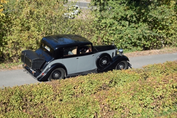 Der Start erfolgte am Freitag nach einem gemeinsamen Frühstück im Rheinhotel Dreesen in Bonn Bad Godesberg. Von hier ging es zunächst ein kurzes Stück am Rhein entlang, bevor sich die Route sanft hinauf in die „Pellenz“ und in die „Maikammer-Eifel“ schlängelte. Über das „Schrumpftal“ ging es an die Mosel, wo in Hatzenport ein kurzer Stopp vorbereitet war. Über den Höhenzug zwischen Mosel und Rhein, dem Hunsrück, führte die Strecke über kleinste Straßen oberhalb des Rheintals nach Urbar, und dort zum Restaurant „Maria Ruh - Loreleyblick“. Bei dem Mittagessen konnten die Teilnehmer einen beeindruckenden Blick auf Deutschlands größten Strom und auf den gegenüberliegenden Loreleyfelsen genießen. Die folgenden 80 Kilometer führten ausschließlich über kleinste Kreisstraßen und man musste sich wieder einmal fragen, ob man hier überhaupt mit einem PKW lang fahren darf. Nach insgesamt 195 km rollten die 25 Oldtimer über das historische Kopfsteinpflaster in Meisenheim und wurden im Hotel Meisenheimer Hof herzlich begrüßt. Mit Sektempfang und einem rustikalen Pfälzer Abend, wurde der erlebnisreiche Tag im „Boos von Waldeckschen Hof“, einem Adelssitz aus dem 15. Jahrhundert, gebührend gefeiert.