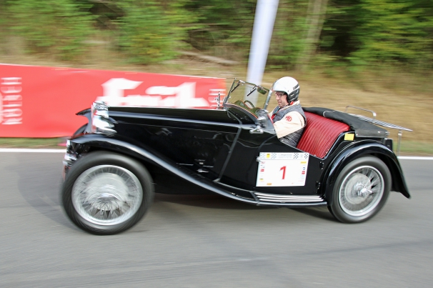 Im Starterfeld der Vorkriegsklassiker war dann auch gut was los: das Team Andrea Linke und SB Alexander Krahe fuhren auf den 2. Platz. Gerhard Breuer, Sportreferent der Rheinländer, bediente Stoppuhr und Gaspedal so geschickt, dass ihm der Sieg in der Klasse Vorkrieg und sogar der Sonderpokal "MG" beschert wurde.